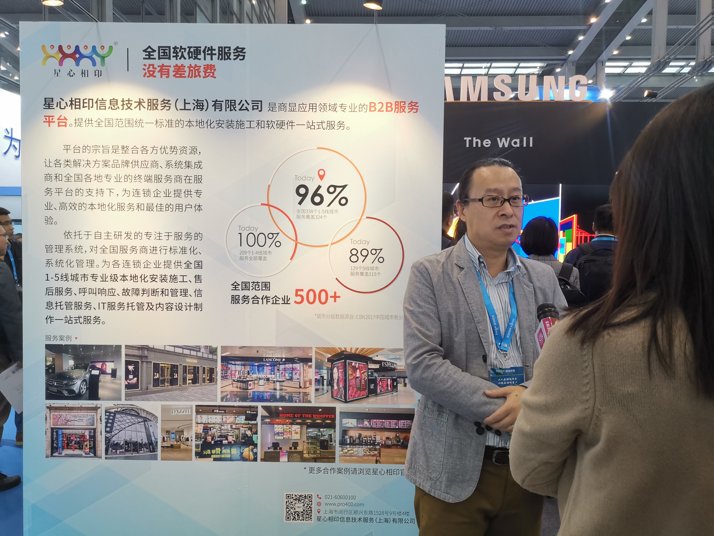 展會(huì)期間(jiān),星心相(xiàng)印接受了(le)深圳衛視(shì)、騰↕訊等四家(jiā)媒體(tǐ)的(de)采訪。作(zuò)為(wèi)專業(yè)的(de)B2B商顯服務平台,星心相(xiàng)印整合各方優勢資→源,讓各類解決方案品牌供應商、系統集成商、全國(guó)各地(dì)專業(yè)的(de)終端服務商在我們的(de)支持下(xià),為(wèi)>連鎖企業(yè)提供專業(yè)、高(gāo)效的(de)本地(dì)化(huà)服務和(hé)最佳的(de)用(yòng)戶體(tǐ)驗。并真正做(zuò)到(dào)全國(guó)軟硬件(jiàn)服務沒有(yǒu)差旅費(fèi)。