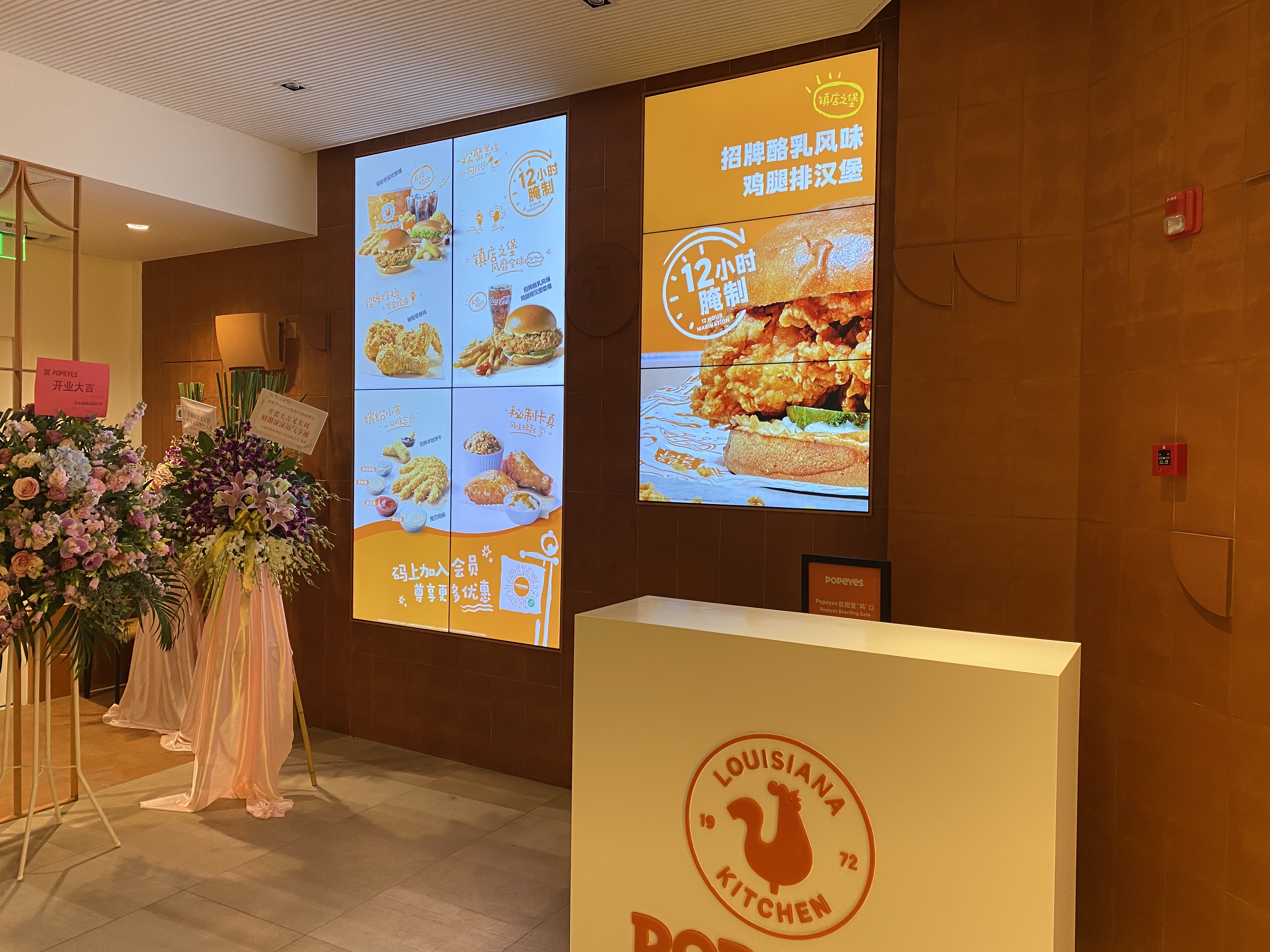 Popeyes1972年(nián)創立于美(měi)國(guó)南(nán)部,以其獨特的(de)炸雞、海(hǎi)£鮮等特色美(měi)食享譽全球。Popeyes上(shàng)海(hǎi)旗艦店(diàn)坐(zuò)落在淮海(hǎi)中路(βlù),店(diàn)內(nèi)精心選用(yòng)的(de)三星商用(yòng)顯示器(qì)打造出高(gāo)端且别緻的(de)用(yòng)餐環境。